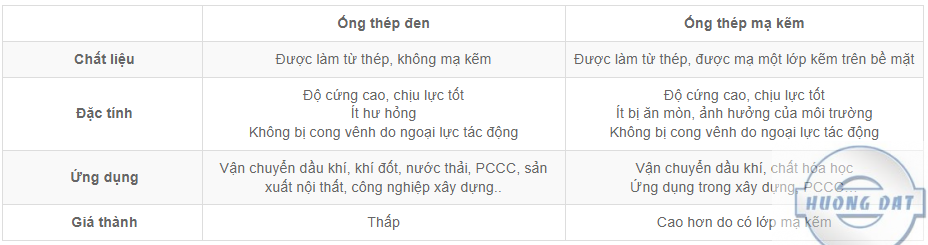 Ống thép đen và ống thép mạ kẽm có nhiều điểm khác biệt, có thể nhận phân biệt qua một số điểm đặc trưng dưới đây: